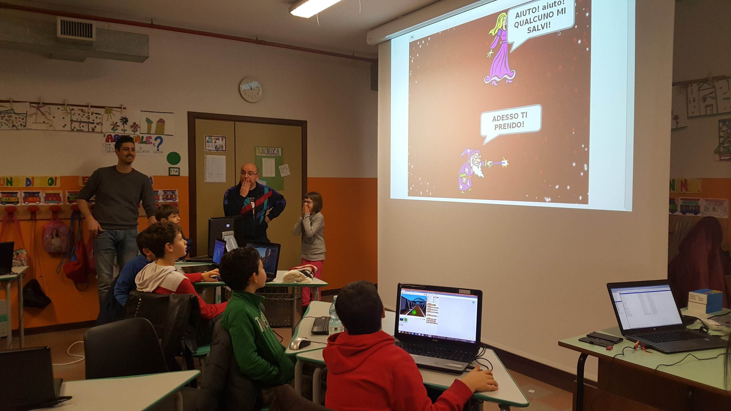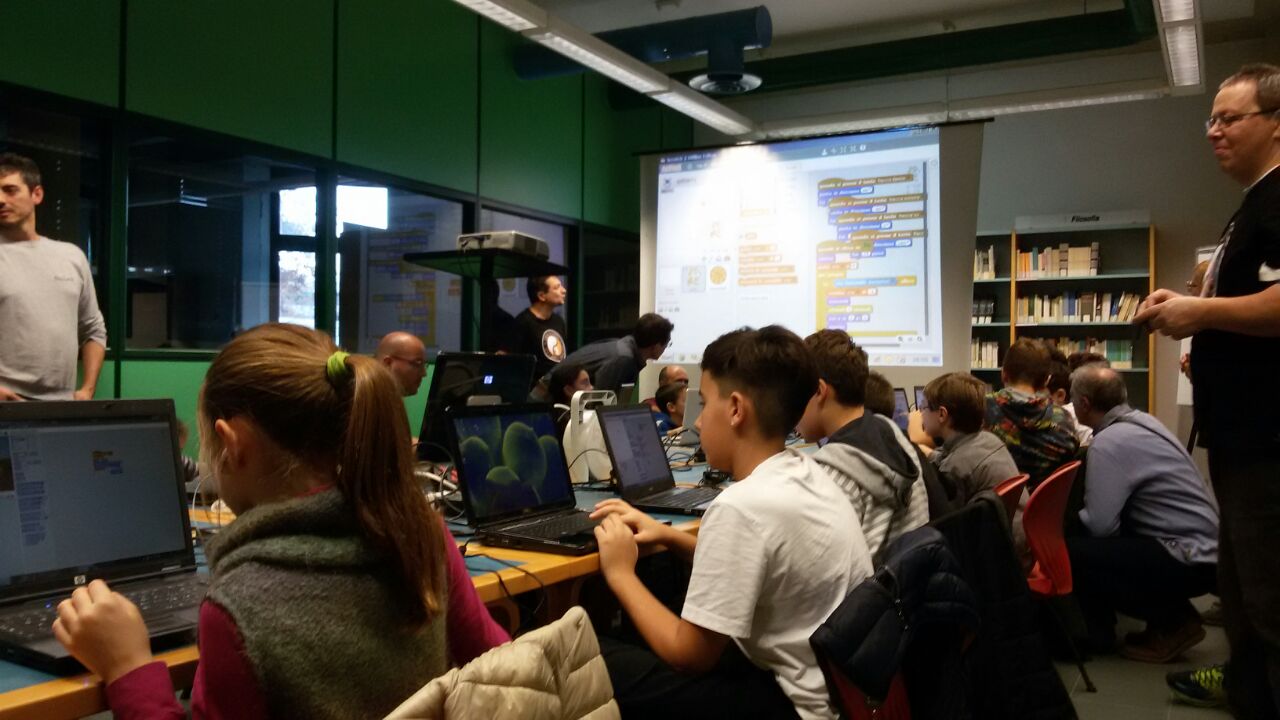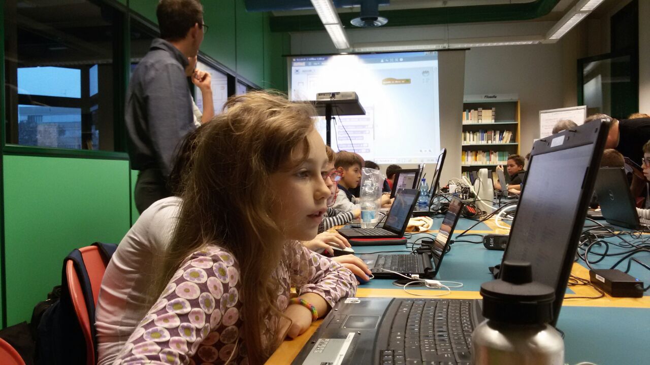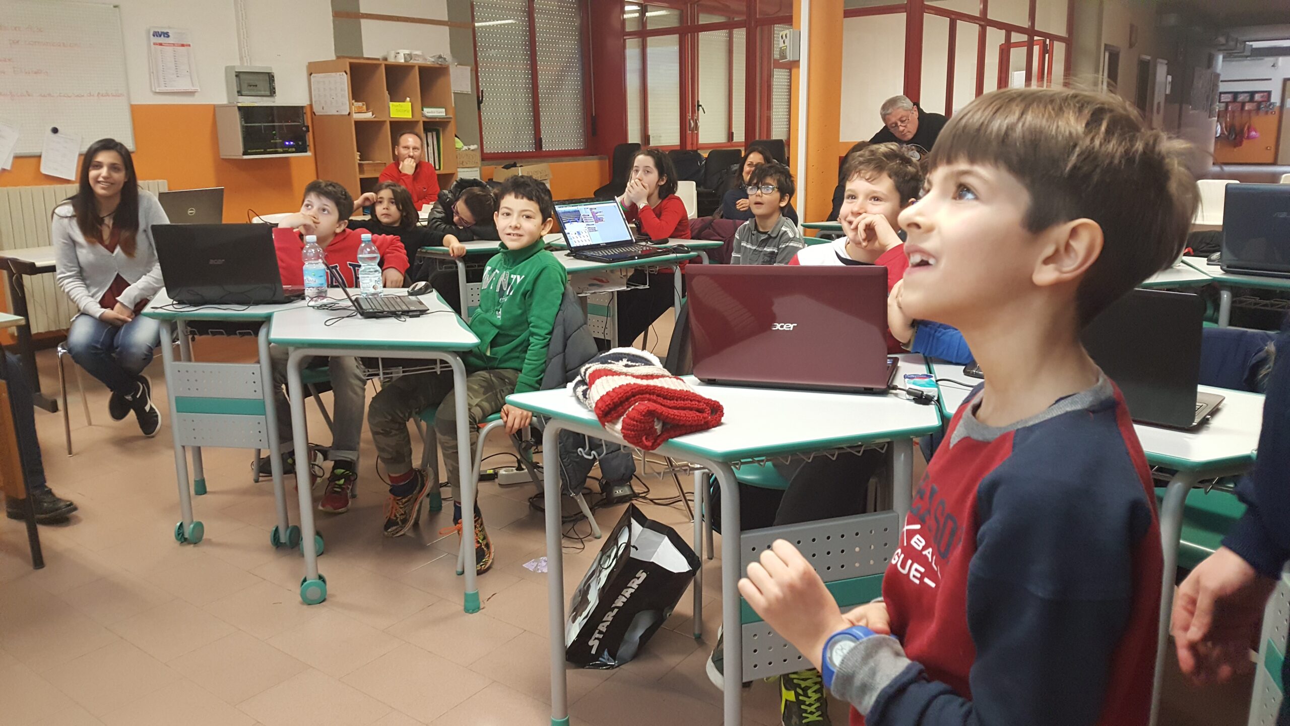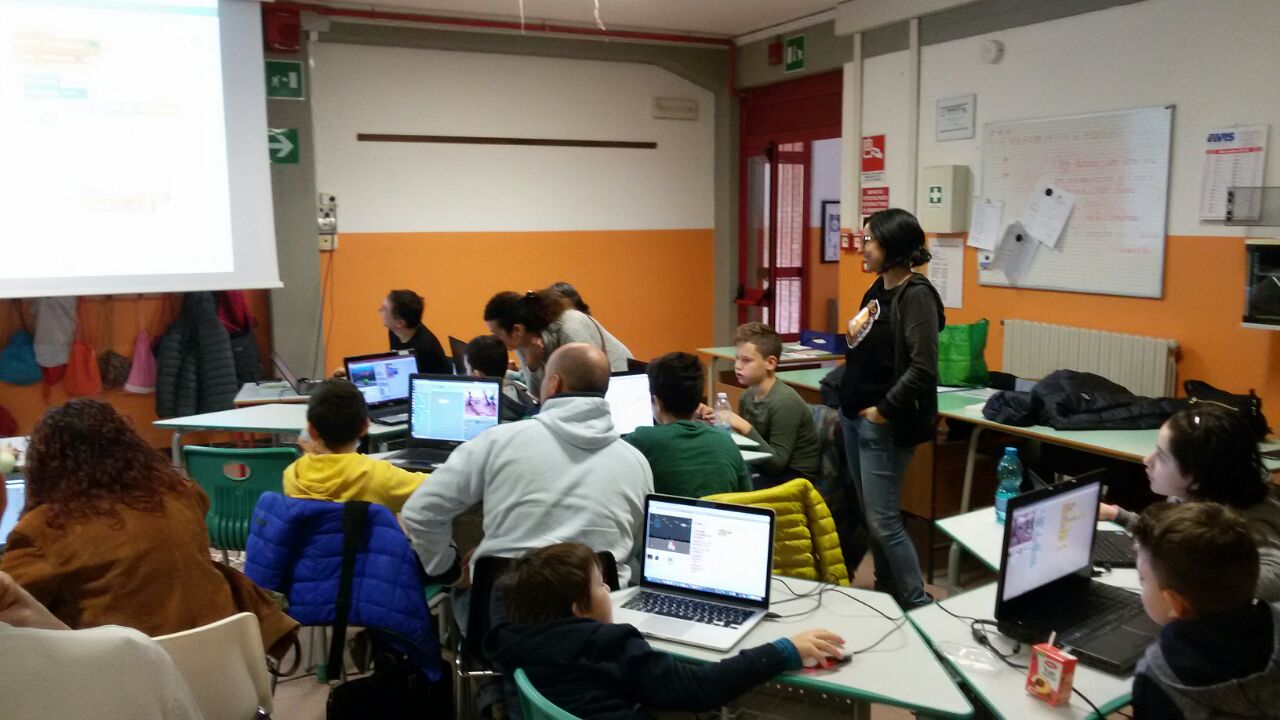 Dopo due eventi pomeridiani in biblioteca, il 18 febbraio siamo tornati alla scuola Ciari. L’evento si è svolto sabato mattina, dalle 9 alle 12, e hanno partecipato 15 bambini e bambine della scuola primaria. A differenza delle volte precedenti, nelle quali abbiamo creato dei giochi, questa volta l’argomento affrontato è stato lo storytelling con Scratch.