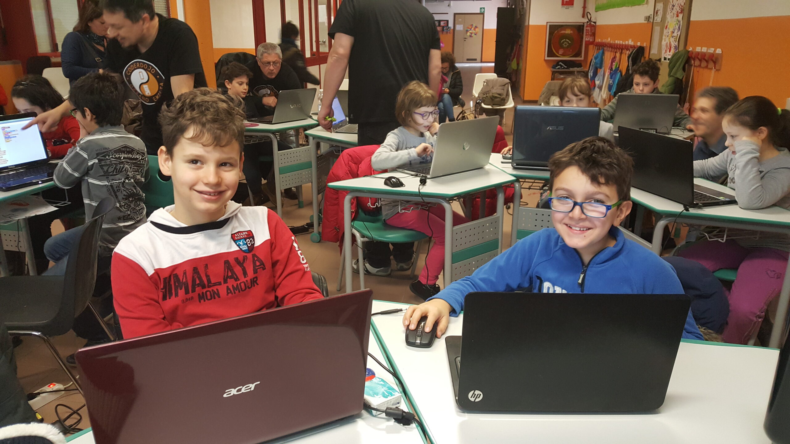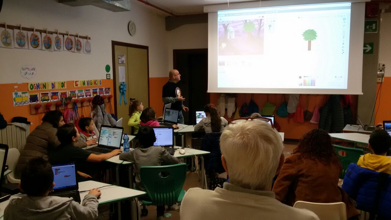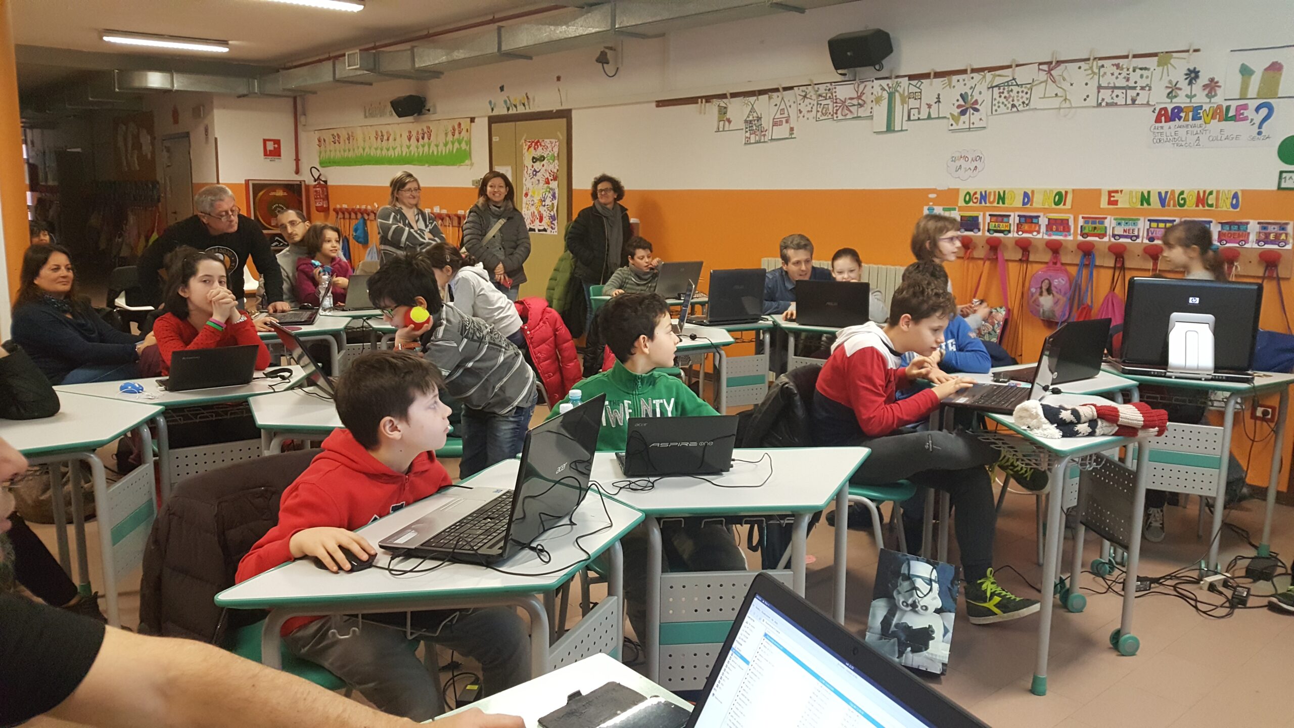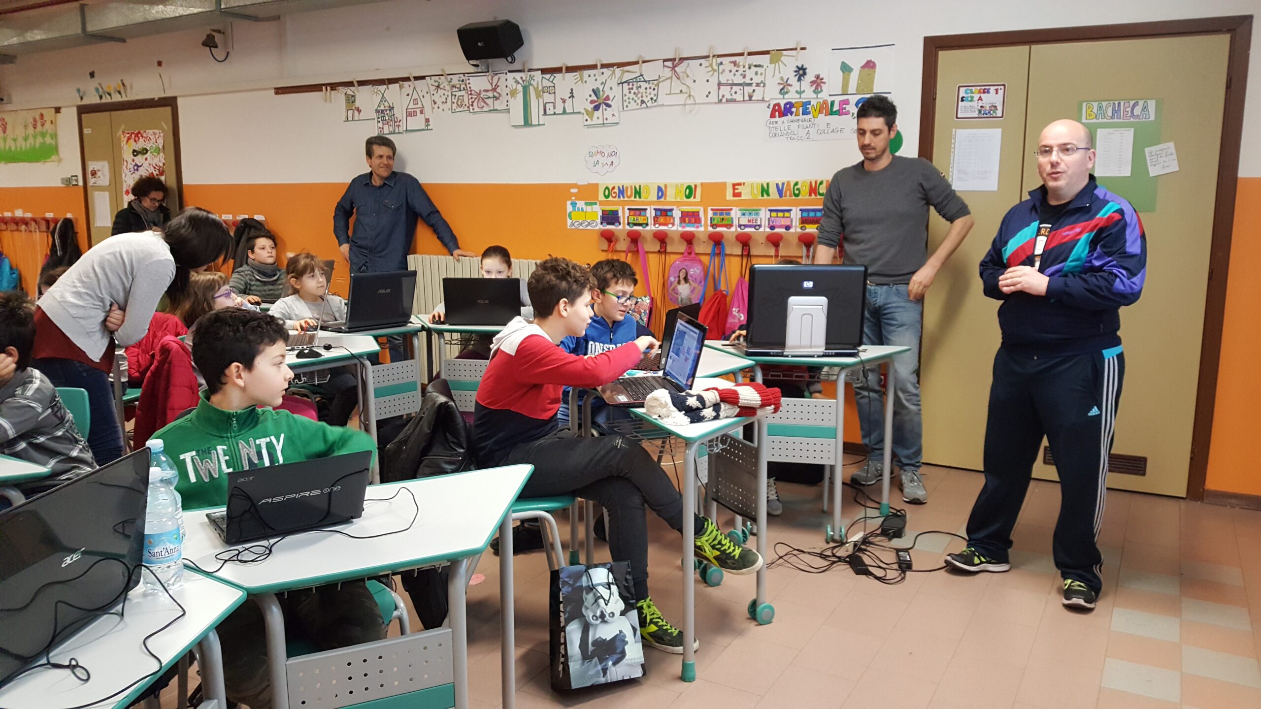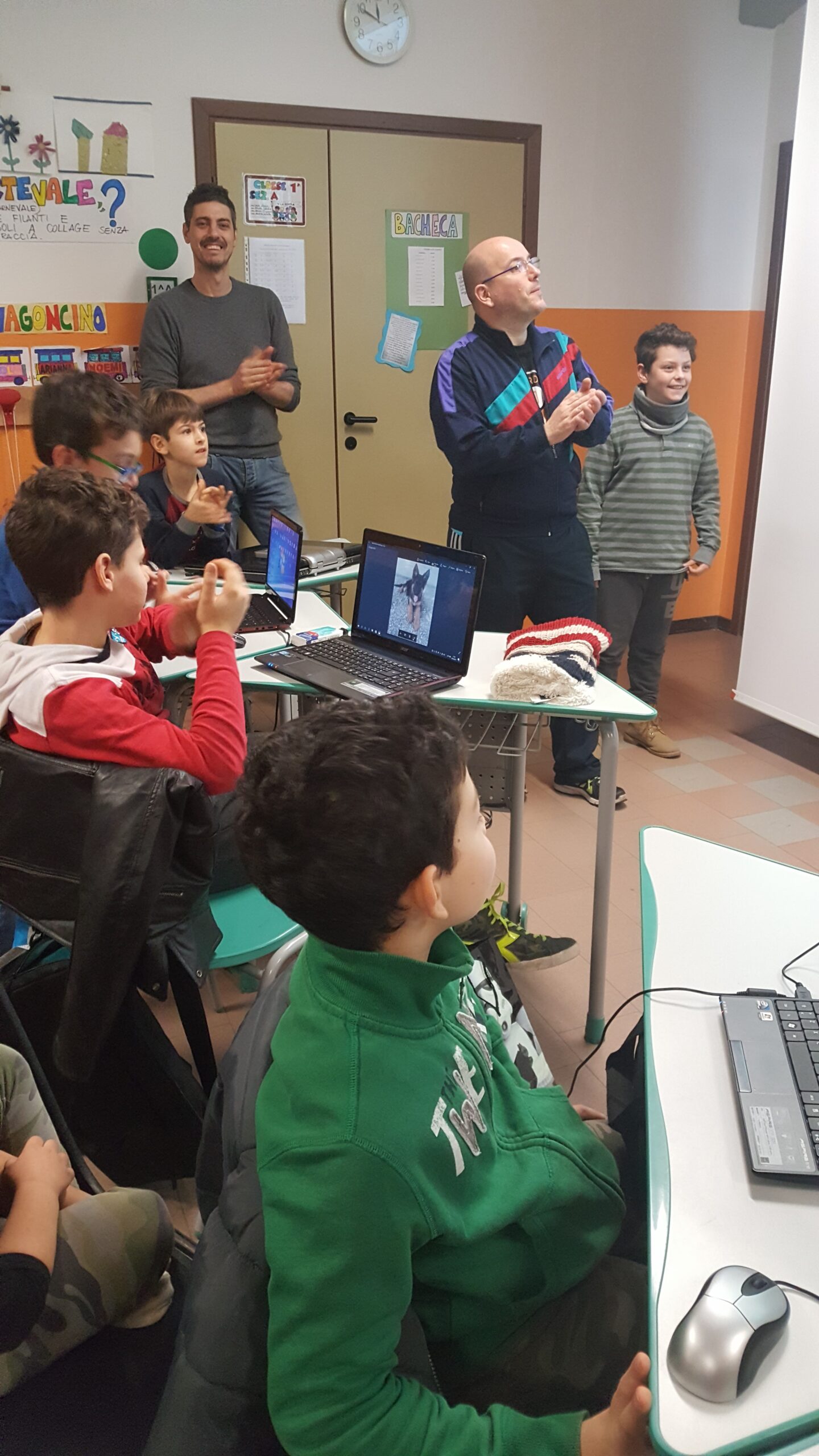 Dopo due eventi pomeridiani in biblioteca, il 18 febbraio siamo tornati alla scuola Ciari. L’evento si è svolto sabato mattina, dalle 9 alle 12, e hanno partecipato 15 bambini e bambine della scuola primaria. A differenza delle volte precedenti, nelle quali abbiamo creato dei giochi, questa volta l’argomento affrontato è stato lo storytelling con Scratch.