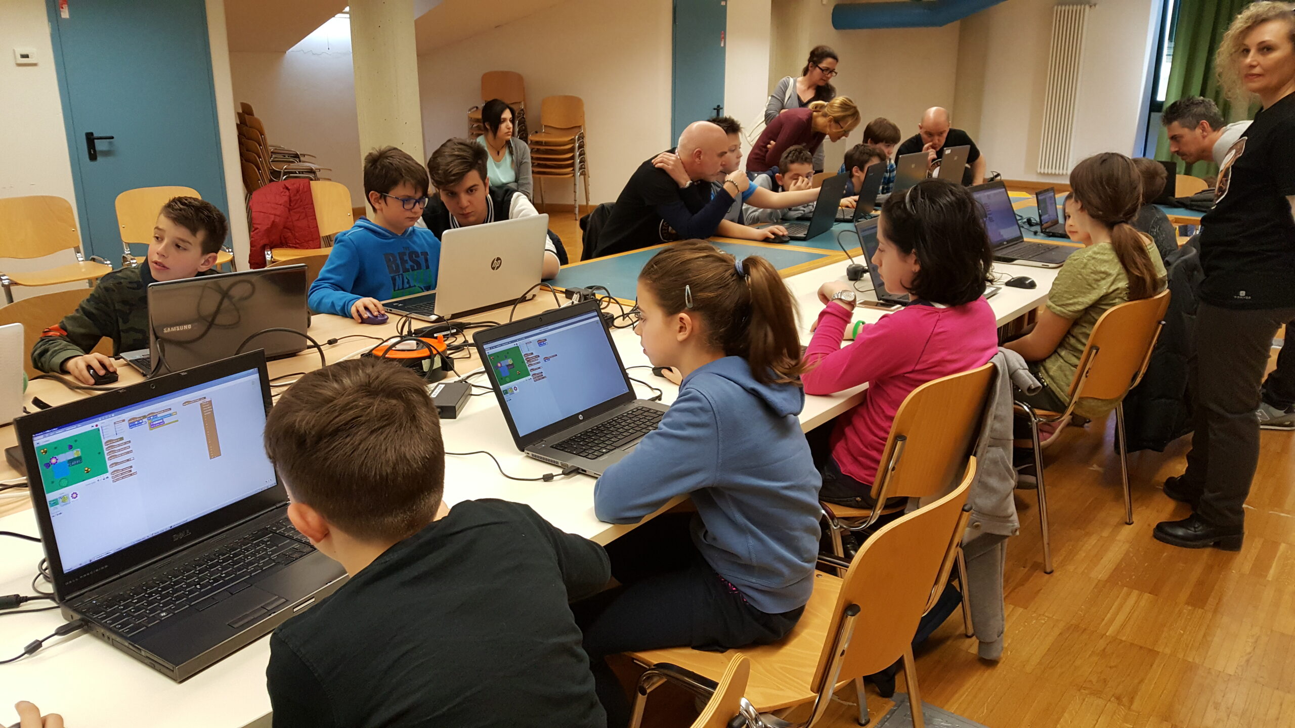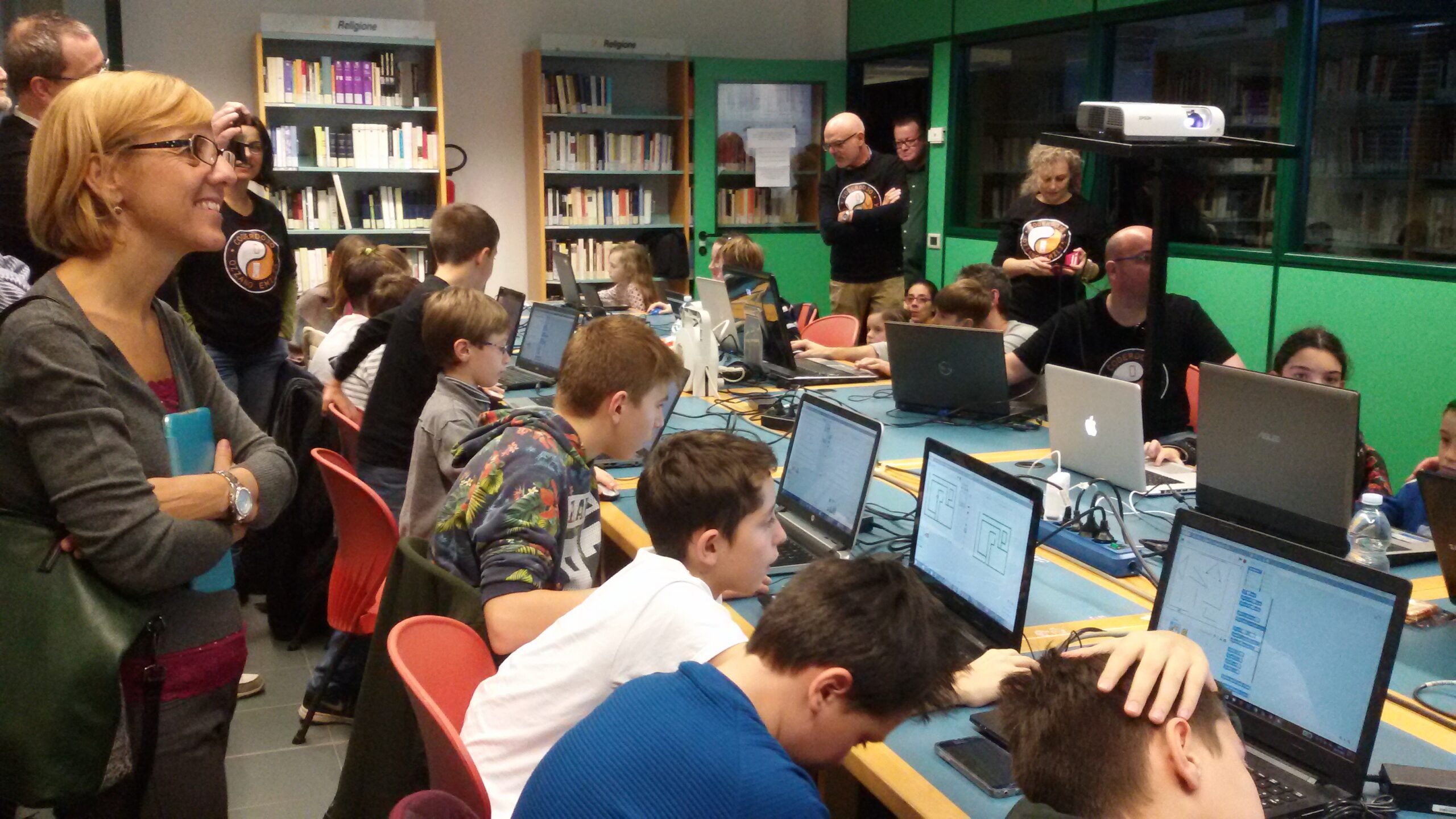 Sabato scorso, 18 marzo 2017, alla biblioteca comunale di Ozzano dell’Emilia, si è tenuto il consueto appuntamento mensile con il CoderDojo, nel quale bambini e ragazzi hanno programmato insieme, divertendosi. Non tutti i bambini erano di Ozzano: alcuni sono venuti da Castel San Pietro, dove si è sparsa la voce dei nostri dojo 🙂